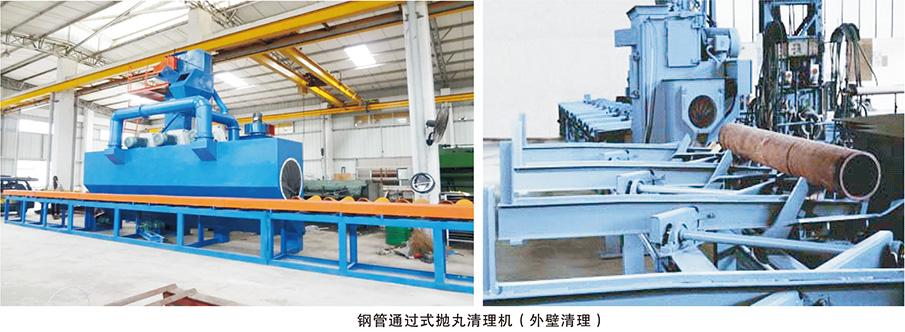 工藝簡介:鋼管外壁拋丸清理機主要用于鋼管及鋼管類產(chǎn)品的外表面清理,不但可以去除鋼管外壁的氧化皮或銹蝕,還可以消除工件的應(yīng)力,提高工件的抗疲勞強度,達到規(guī)定的粗糙值與硬度,并最終達到提高整個工件表面及內(nèi)在質(zhì)量的目的。