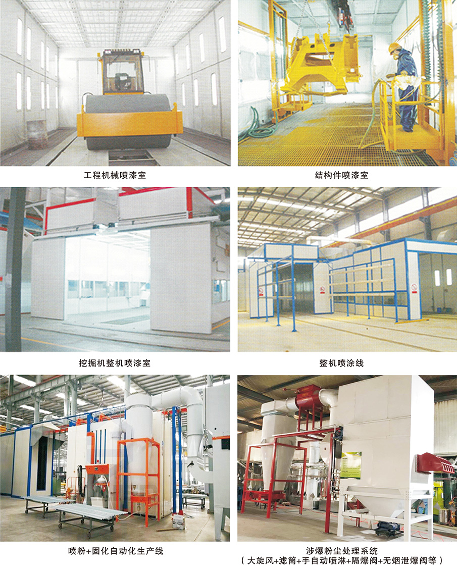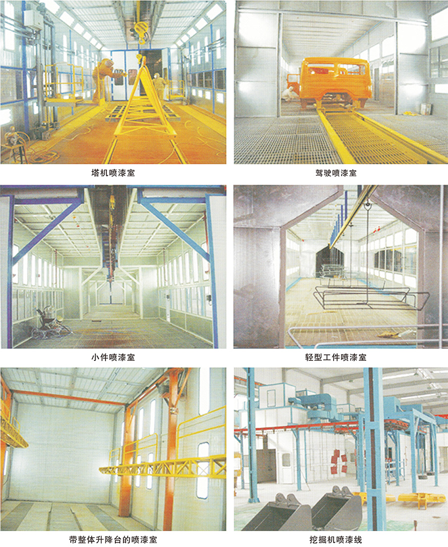 系列涂裝生產(chǎn)線:1、生產(chǎn)線工藝 底漆噴漆-流平一烘干-強(qiáng)冷-中涂流平一中涂烘干-強(qiáng)冷-面漆噴漆-面漆流平-面漆烘干-面漆強(qiáng)冷。 2、工件物流輸方式 懸掛鏈、積放鏈空中輸送、地面路軌臺(tái)車輸送、電動(dòng)自行葫蘆輸送。 3、生產(chǎn)線設(shè)備 噴漆室、烘干室、流平室、強(qiáng)冷室、打磨室。